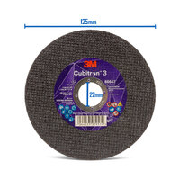 The 3M™ Cubitron™ 3 Cut-Off Wheel, 86647, 60+, T41, 125mm x 1mm x 22.23mm Cut-Off Wheel is designed to deliver an unbeatable combination of performance and value in metal cutting applications. This long-lasting wheel uses 3M Precision-Shaped Grains to deliver a fast and consistent cut through pipes, tubes or flat sheets of stainless steel, mild steel, aerospace alloys and more. These clean, sharp points found in the grain helps create an abrasive that slices faster, runs cooler, and lasts longer than conventional abrasives. 3M™ Cubitron™ Performance Abrasives are made for professionals who need more from their equipment — so experience the next generation in abrasive performance by choosing the 3M™ Cubitron™ 3 Cut-Off Wheel.