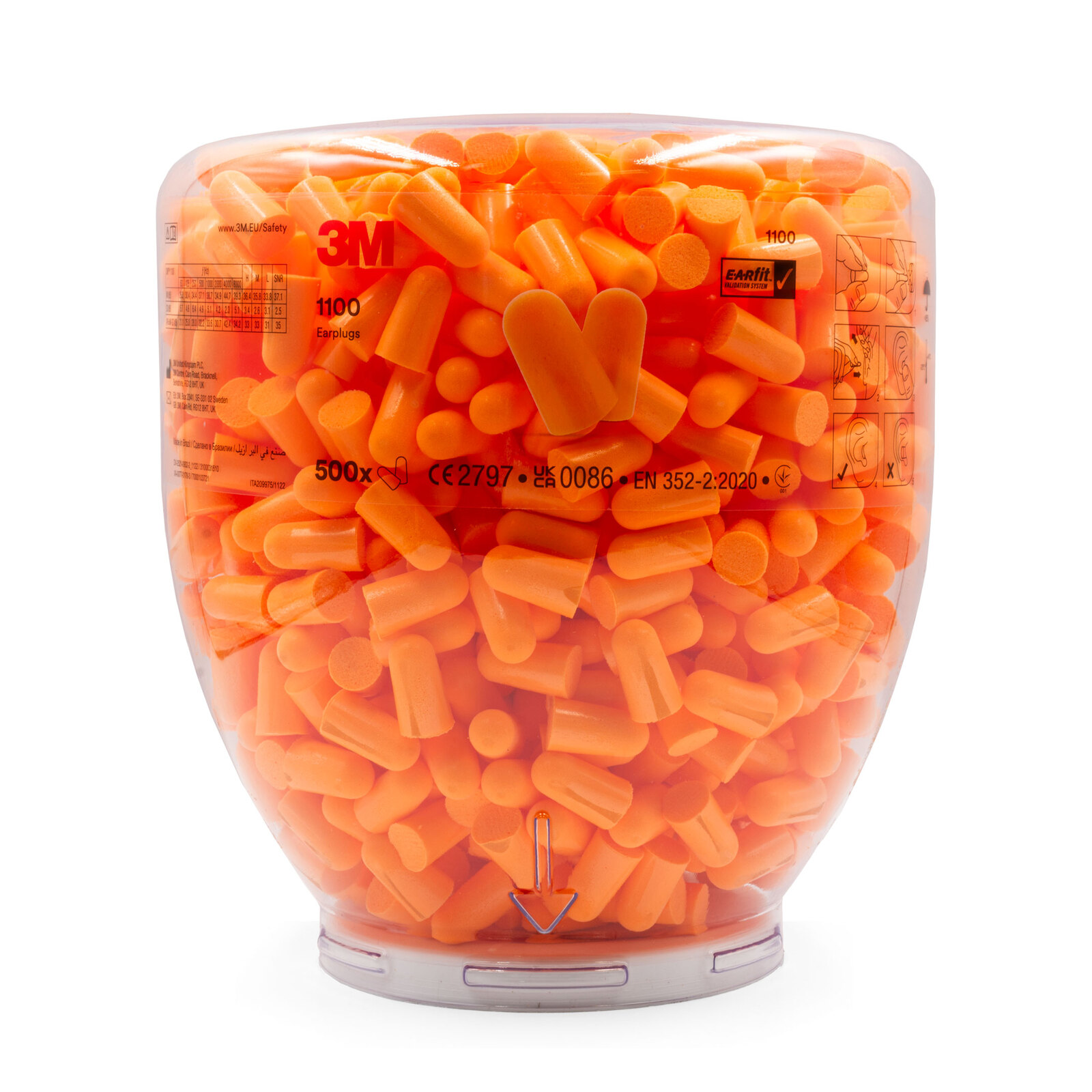The 3M™ ONE TOUCH™ dispenser features the most reliable delivery system in the world. The “No Waste Funnel” system allows users to reuse both the base and dispensing unit. The 3M ONE TOUCH dispenser hold 500 pairs of the original 3M 1100 and 1120 earplug.