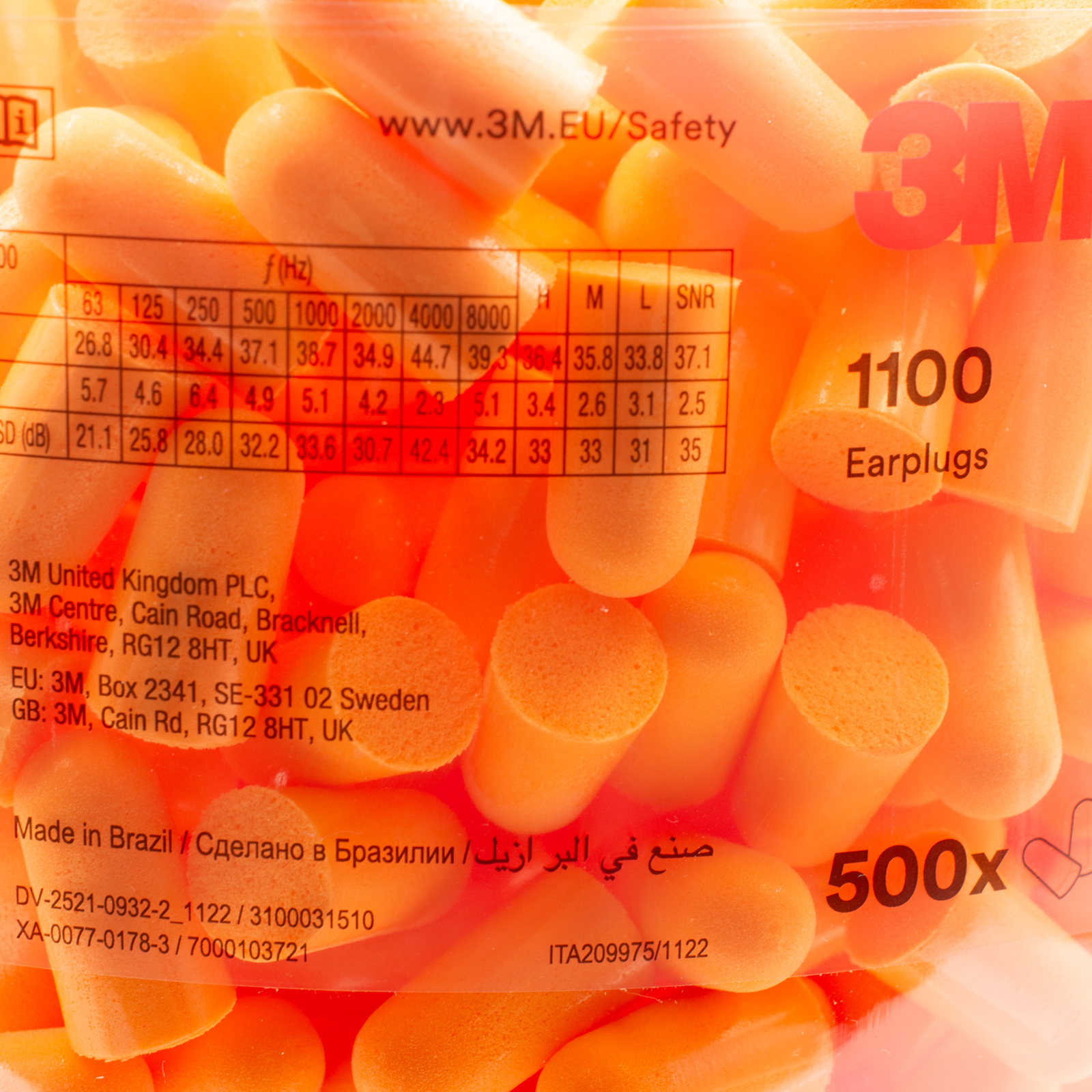 Get comfortable hearing protection with 3M™ 1100 Earplugs. Easy to roll down and insert, their tapered design helps provide a noise-reducing seal in the ear canal. Made with a soft, hypoallergenic foam, they react and soften with your body temperature, offering a longer more comfortable wear. Fully tested and approved against EN 352-2 they can reduce noise levels by 37 dB. Model is compatible for use with the 3M™ E-A-RFit™ Dual-Ear Validation System and available as a probed plug. This model is packed in refill bottles for use with 3M(TM) E-A-R(TM) One Touch(tm) Pro Earplug Dispenser for convenient on-site easy access to hearing protection with reduced waste.
