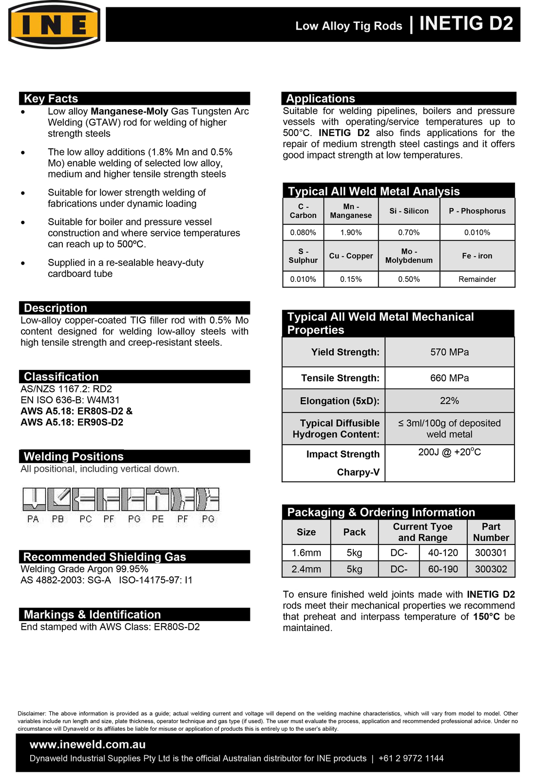ER80S-D2 is designed to give high strength welds compared to standard ER70S-X filler materials. This wire contains additional amounts of manganese and silicon which produces weld deposits which have high ductility, excellent impact values and tensile strengths of approximately 100,000 psi.