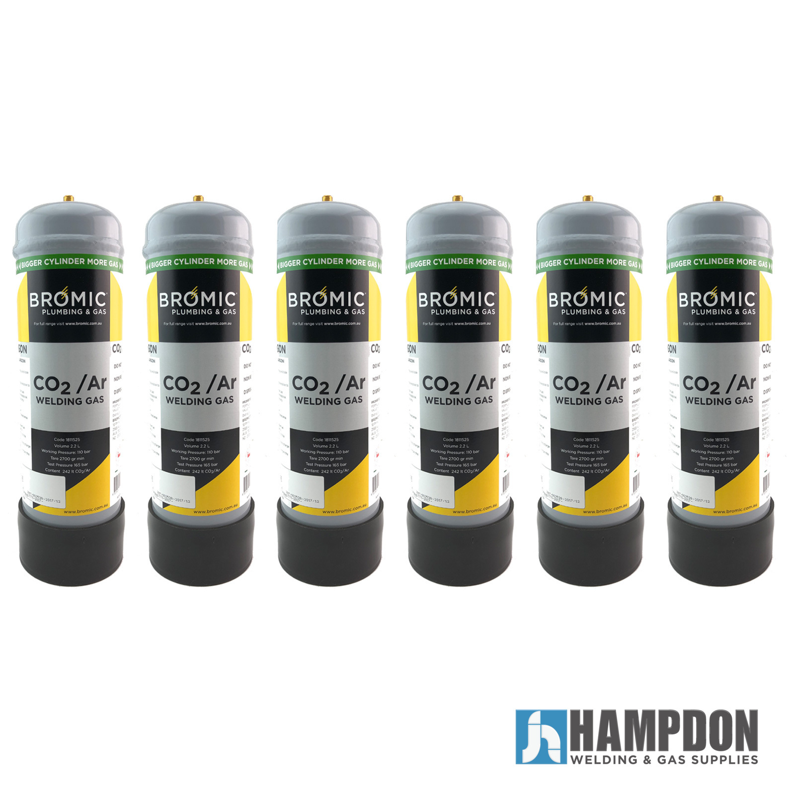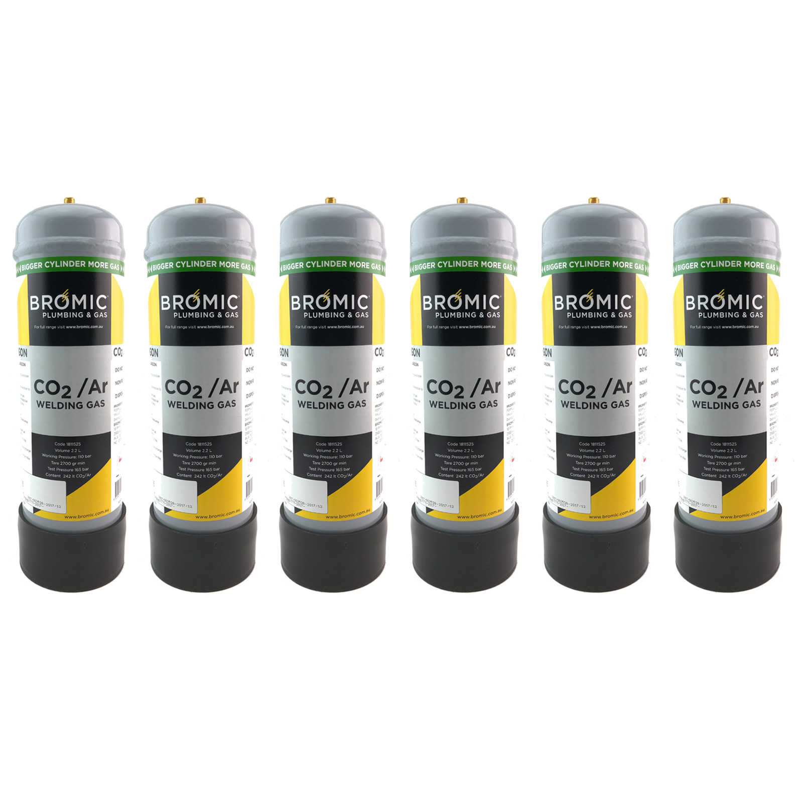 - 6 x 2.2 Litre Argon / Co2 Cylinders